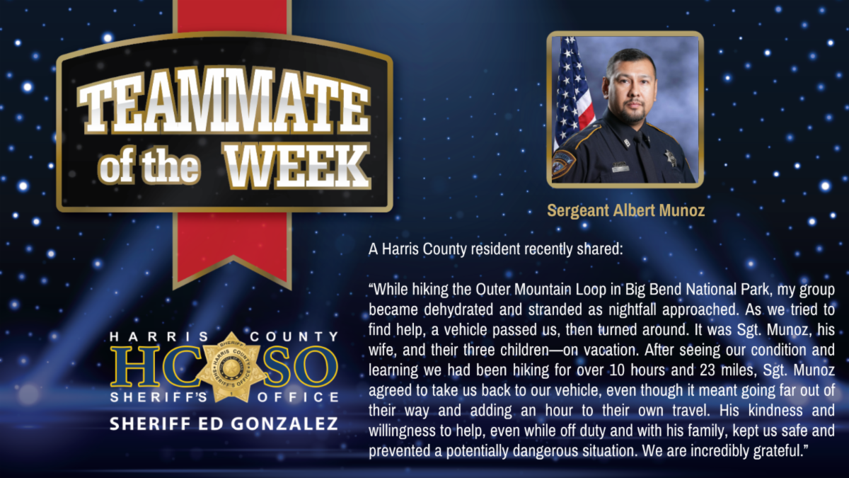 Harris County Sheriff’s Office Teammate of the Week: Sheriff Ed Gonzalez and the HCSO highlight exceptional teammates who serve others above and beyond their duties. We regularly receive positive emails, thank you notes, and phone calls from the community.
