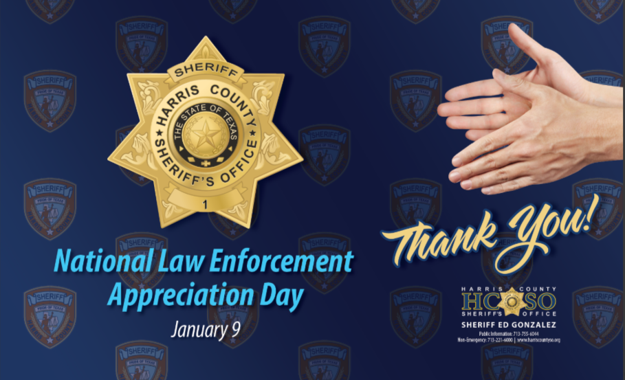 In recognition of National Law Enforcement Appreciation Day, Sheriff Ed Gonzalez and the Harris County Sheriff’s Office commend the courageous men and women of the department.