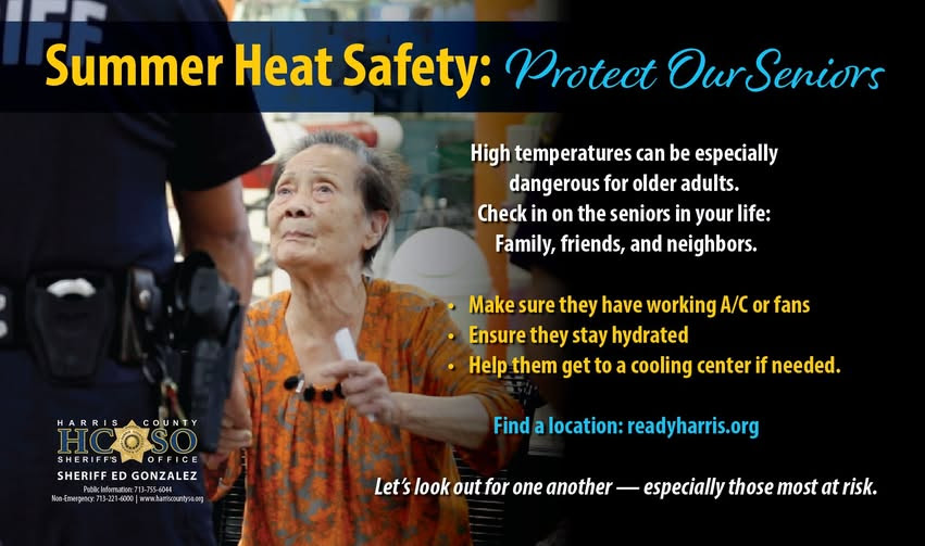 Please take a moment to check on the older adults in your life. Make sure they have working A/C or fans, are staying hydrated, and know where to go if they need help cooling off.