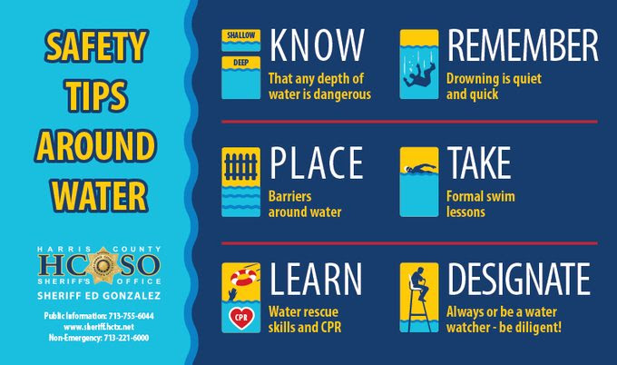 Sheriff Ed Gonzalez and the Harris County Sheriff’s Office urge families to stay vigilant around water. Whether at the pool, lake, or beach — a few simple steps can prevent a tragedy.
