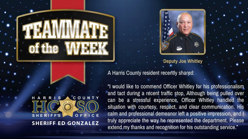 Harris County Sheriff’s Office Teammate of the Week: Sheriff Ed Gonzalez and the HCSO highlight exceptional teammates who serve others above and beyond their duties. We regularly receive positive emails, thank you notes, and phone calls from the community.