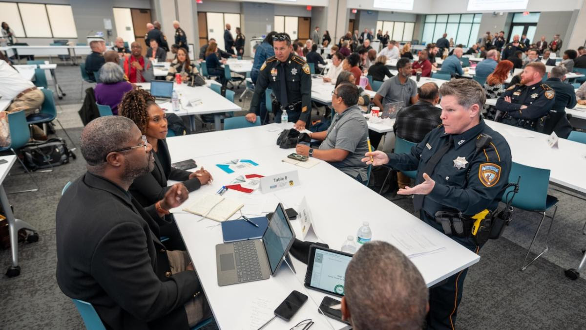The day began at Holocaust Museum Houston, where Dena Marks of the Anti-Defamation League spoke about the real and lasting impact of hate and the responsibility law enforcement carries in protecting civil rights. From there, the group traveled to Emancipation Park, where Tammie Lang Campbell of the Honey Brown Hope Foundation shared the neighborhood’s history and spoke about the importance of trust, transparency, and understanding in public service.