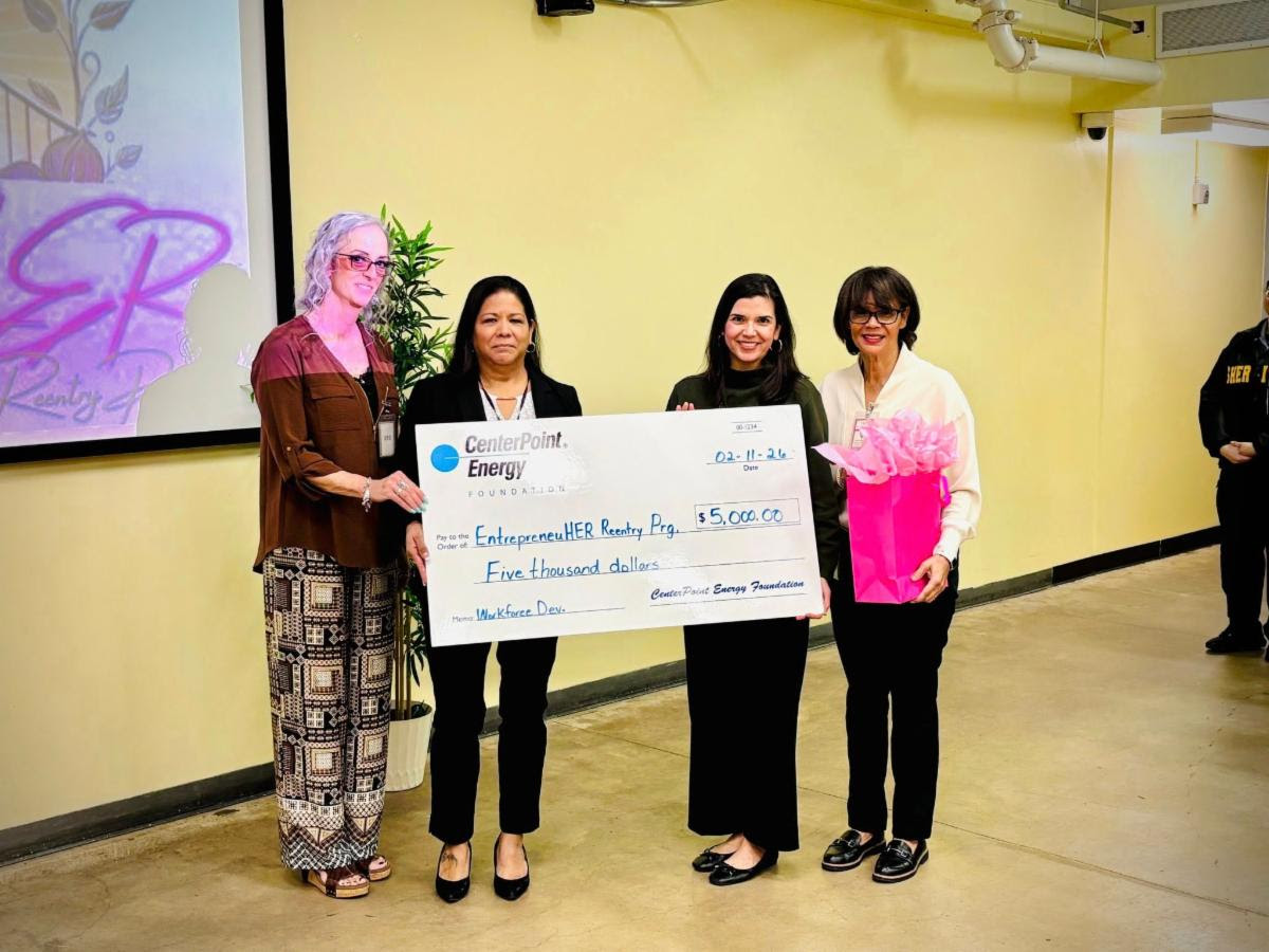 The CenterPoint Energy Foundation presented a $5,000 grant to the EntrepreneuHer Re-Entry Program to support the “Pathways to Empowerment” pilot initiative. This vital funding will provide entrepreneurship certification training for 40 women—both within the WEC and through community-based probation cohorts.